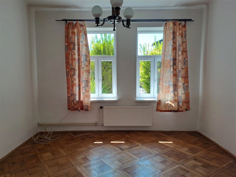 Nabízíme k pronájmu prostorný byt se dvěma neprůchozími pokoji v přízemí v historické činžovní vile Rusalka s pěti byty. Dům je přímo v Říčanech naproti nemocnici. Kuchyně a pokoj č. 1 (obývací pokoj) jsou směrem do ulice a mají výhled do předzahrádky. Pokoj č. 2 (ložnice s velkou hnědou šatní skříní) je s výhledem do zahrady. Zahrada není přístupná. V obou pokojích jsou parkety. Nová plastová okna a nové vnitřní dveře v celém bytě. Osvětlovací tělesa a garnyže se závěsy ve všech 3 místnostech. Ve velké kuchyni, která může sloužit i jako obytná, je úzká šedá skříň, kuchyňská linka a plynový sporák. Koupelna je s vanou, WC je samostatné. V předsíní jsou dvě policové skříně. Ústřední topení plynový kotel Junkers pouze pro tento byt. Rychlé spojení s Prahou vlakem. Městský autobus č.2 , který je zdarma má zastávku nedaleko domu a jezdí na říčanské vlakové nádraží. K ceně nájmu je třeba připočíst zálohu na služby 800,Kč/osoba/měsíc (vodné, popelnice, úklid a osvětlení domu) + náklady na elektřinu a plyn, které si nájemce přihlašuje na sebe a hradí přímo dodavateli. Poslední nájemce měl náklady na plyn 2.230 Kč měsíčně na na elektřinu 1.640 měsíčně. Celkové měsíční náklady případě jedné osoby by tedy při standardní spotřebě neměly přesáhnout 20. 000,Kč a u dvou osob pak 21.000,Kč.